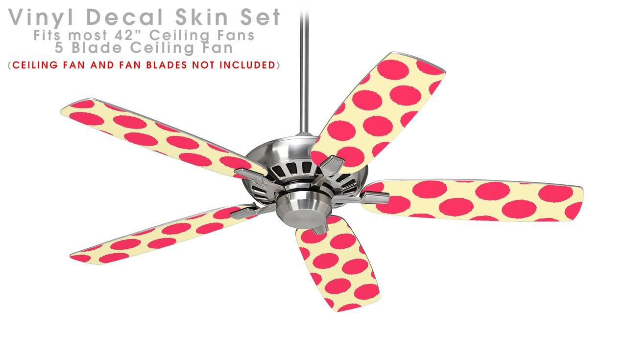 Kearas Polka Dots Pink On Cream - Ceiling Fan Skin Kit fits most 42 inch fans (FAN and BLADES SOLD SEPARATELY)
