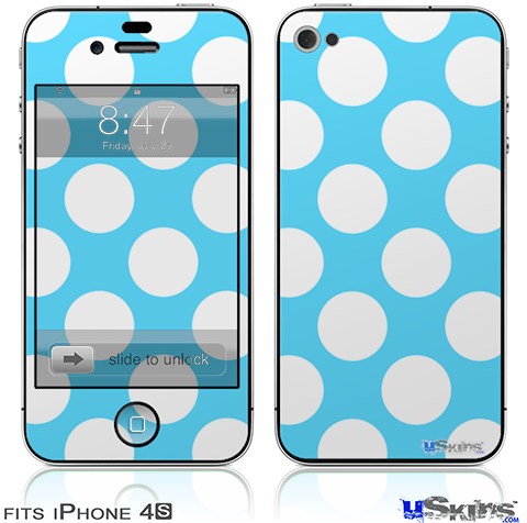 iPhone 4S Decal Style Vinyl Skin - Kearas Polka Dots White And Blue