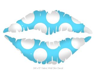 Kearas Polka Dots White And Blue - Kissing Lips Fabric Wall Skin Decal measures 24x15 inches