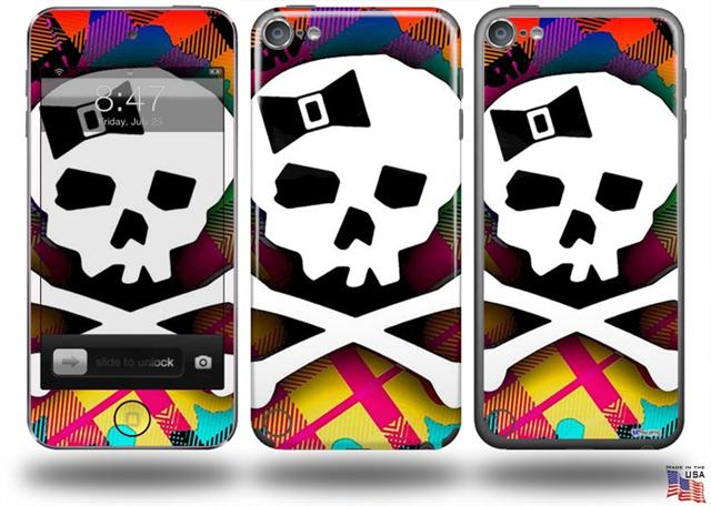Rainbow Plaid Skull Decal Style Vinyl Skin - fits Apple iPod Touch 5G (IPOD NOT INCLUDED)