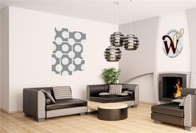 Kearas Polka Dots Whtie On Gray - 7 Piece Fabric Peel and Stick Wall Skin Art (50x38 inches)