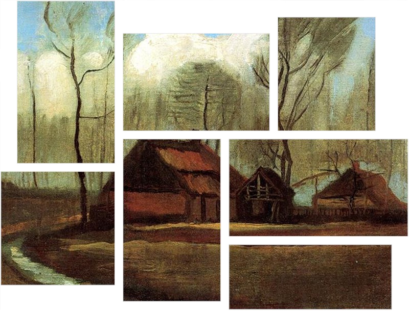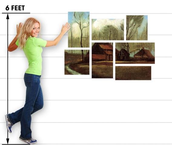 Vincent Van Gogh Farmhouses Among Trees - 7 Piece Fabric Peel and Stick Wall Skin Art (50x38 inches)