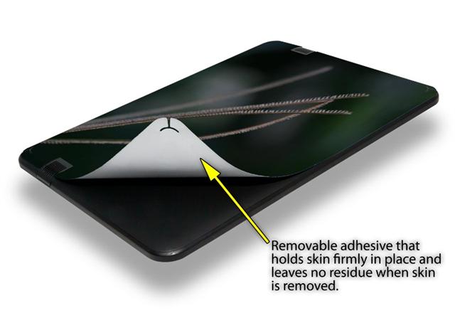 uSkins™ are self adhering vinyl skins that help prevent scratches and look great doing it. Unlike bulky silicon, plastic or metal cases and faceplates, uSkins are designed to be thin and very tough. uSkins are a composite of two layers of commercial grade materials. The bottom layer is a soft, flexible vinyl with a special removable adhesive that is easily positioned, applied without air bubbles, and effortlessly removed without leaving a sticky residue. Next we print the bottom layer with UV protected, fade resistant inks that deliver superb photo quality designs in vibrant colors. Finally we bond a professional grade laminate over the entire skin adding a glossy protective finish.
