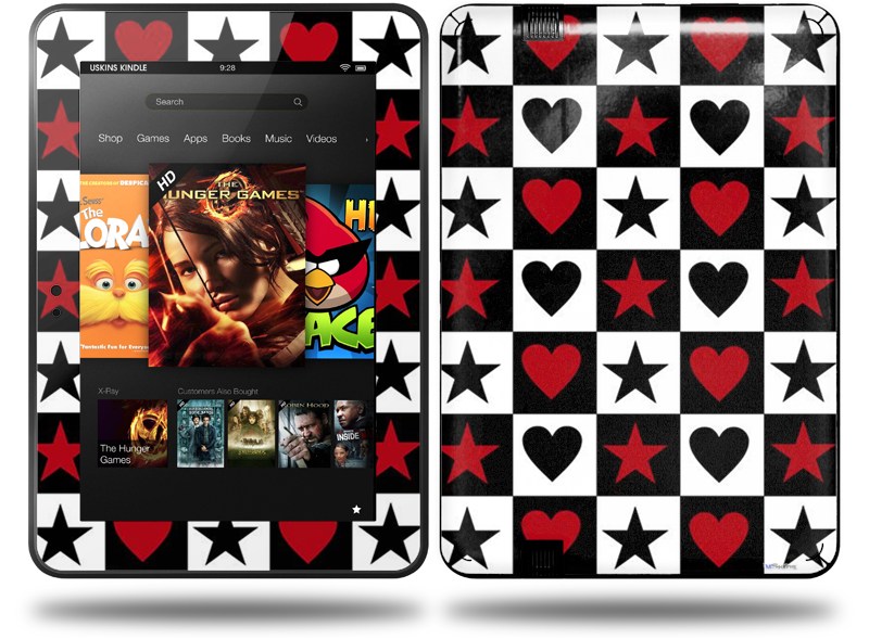 Hearts and Stars Red Decal Style Skin fits Amazon Kindle Fire HD 8.9 inch