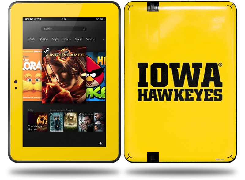 Iowa Hawkeyes 01 Black on Gold Decal Style Skin fits Amazon Kindle Fire HD 8.9 inch