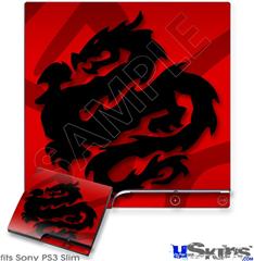 Decal Skin compatible with Sony PS3 Slim Oriental Dragon Black on Red
