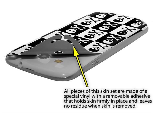 • Decal style vinyl skin covers front and back of Samsung Galaxy S III S3 phone.