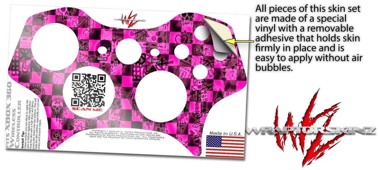 XBOX 360 Wireless Controller Decal Style Skin - Pink Checkerboard Sketches (CONTROLLER NOT INCLUDED)