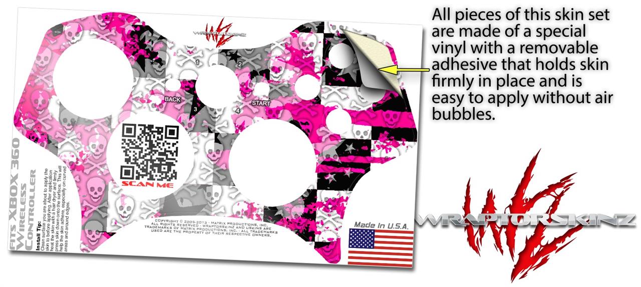 XBOX 360 Wireless Controller Decal Style Skin - Checker Skull Splatter Pink (CONTROLLER NOT INCLUDED)