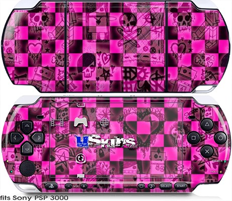 Sony PSP 3000 Skin - Pink Checkerboard Sketches
