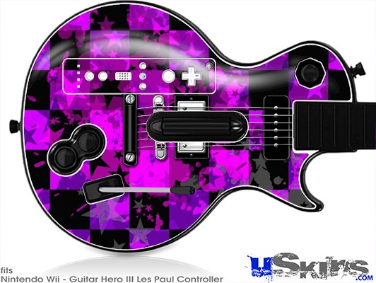 Guitar Hero III Wii Les Paul Skin - Purple Star Checkerboard