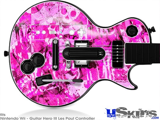 Guitar Hero III Wii Les Paul Skin - Pink Plaid Graffiti