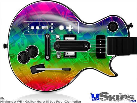 Guitar Hero III Wii Les Paul Skin - Rainbow Butterflies