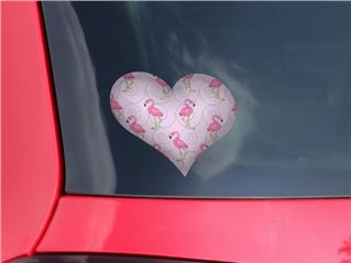 Flamingos on Pink - I Heart Love Car Window Decal 6.5 x 5.5 inches