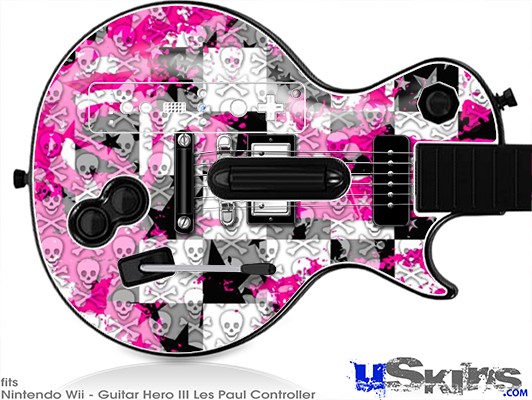 Guitar Hero III Wii Les Paul Skin - Checker Skull Splatter