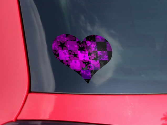 Purple Star Checkerboard - I Heart Love Car Window Decal 6.5 x 5.5 inches