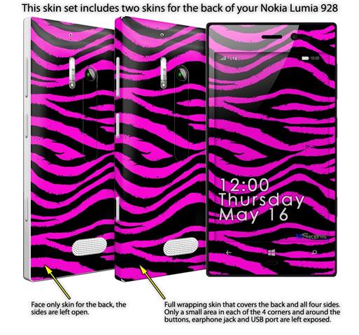 • Decal style vinyl skin covers front, back and side of Nokia Lumia 928 phone.