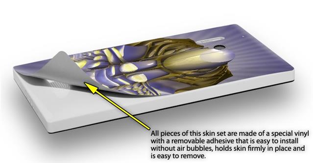 uSkins™ are self adhering vinyl skins that help prevent scratches and look great doing it. Unlike bulky silicon, plastic or metal cases and faceplates, uSkins are designed to be thin and very tough. uSkins are a composite of two layers of commercial grade materials. The bottom layer is a soft, flexible vinyl with a special removable adhesive that is easily positioned, applied without air bubbles, and effortlessly removed without leaving a sticky residue. Next we print the bottom layer with UV protected, fade resistant inks that deliver superb photo quality designs in vibrant colors. Finally we bond a professional grade laminate over the entire skin adding a glossy protective finish.