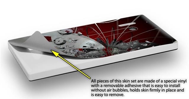 uSkins™ are self adhering vinyl skins that help prevent scratches and look great doing it. Unlike bulky silicon, plastic or metal cases and faceplates, uSkins are designed to be thin and very tough. uSkins are a composite of two layers of commercial grade materials. The bottom layer is a soft, flexible vinyl with a special removable adhesive that is easily positioned, applied without air bubbles, and effortlessly removed without leaving a sticky residue. Next we print the bottom layer with UV protected, fade resistant inks that deliver superb photo quality designs in vibrant colors. Finally we bond a professional grade laminate over the entire skin adding a glossy protective finish.