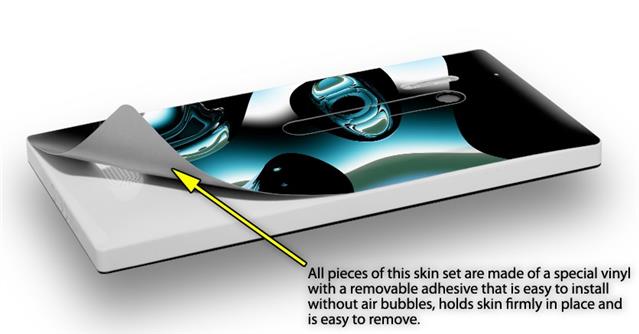 uSkins™ are self adhering vinyl skins that help prevent scratches and look great doing it. Unlike bulky silicon, plastic or metal cases and faceplates, uSkins are designed to be thin and very tough. uSkins are a composite of two layers of commercial grade materials. The bottom layer is a soft, flexible vinyl with a special removable adhesive that is easily positioned, applied without air bubbles, and effortlessly removed without leaving a sticky residue. Next we print the bottom layer with UV protected, fade resistant inks that deliver superb photo quality designs in vibrant colors. Finally we bond a professional grade laminate over the entire skin adding a glossy protective finish.
