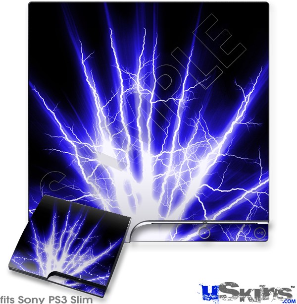 Decal Skin compatible with Sony PS3 Slim Lightning Blue
