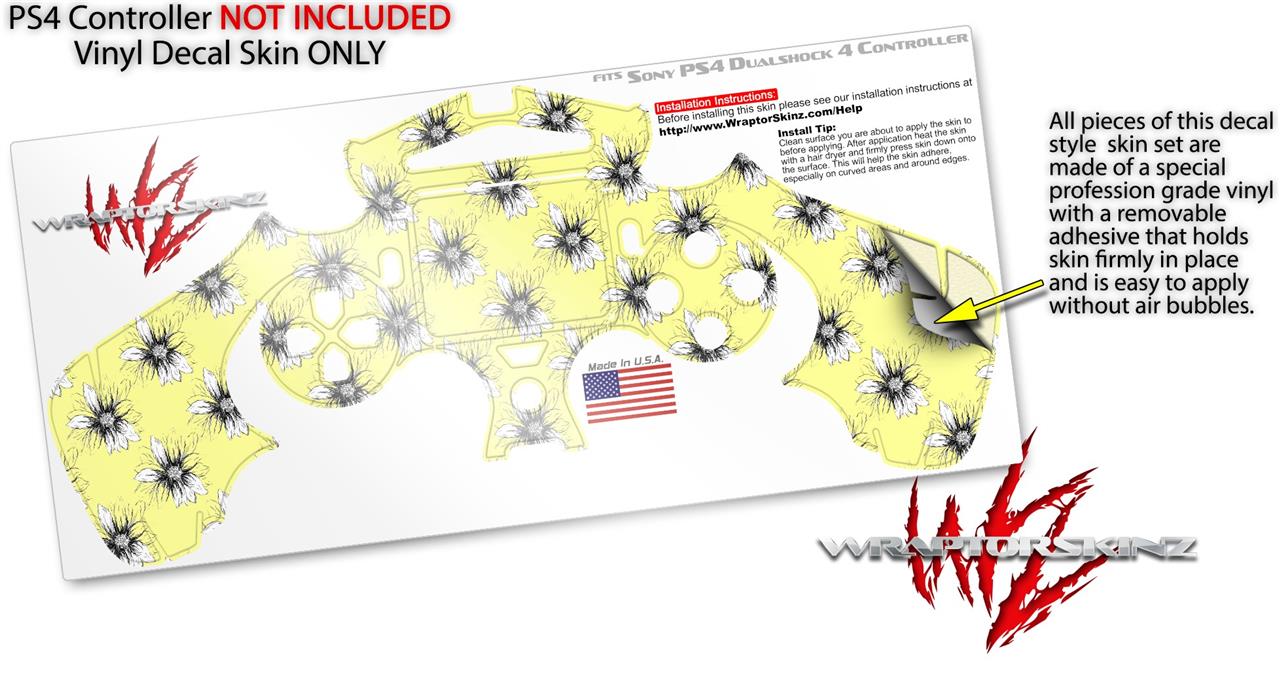 WraptorSkinz Skin compatible with Sony PS4 Dualshock Controller PlayStation 4 Original Slim and Pro Kearas Daisies Yellow (CONTROLLER NOT INCLUDED)