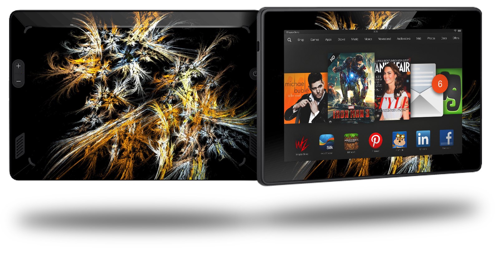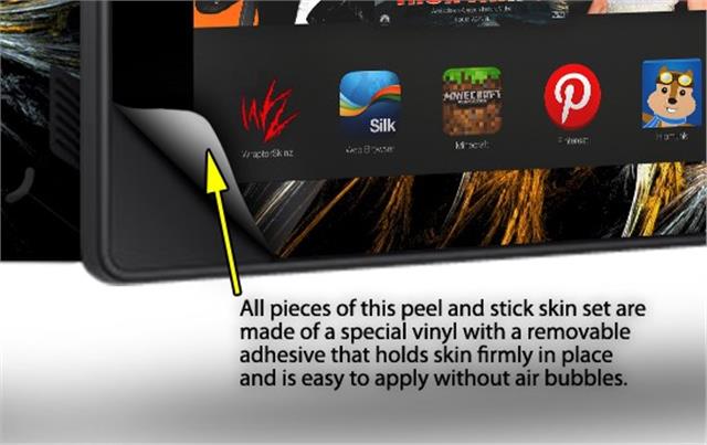 • Skin covers front and back of the Kindle.