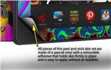 uSkins™ are self adhering vinyl skins that help prevent scratches and look great doing it. Unlike bulky silicon and plastic covers, uSkins are designed to be thin and very tough. uSkins are a composite of two layers of commercial grade materials. The bottom layer is a soft, flexible vinyl with a special removable adhesive that is easily positioned and applied without air bubbles. The bottom layer print with special UV protected, fade resistant inks that deliver superb photo quality designs in vibrant colors. Finally we bond a professional grade laminate over the entire skin adding a glossy protective finish.