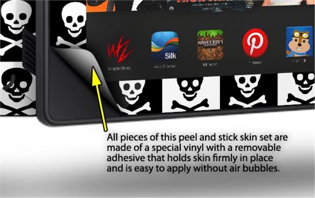 • Skin covers front and back of the Kindle.