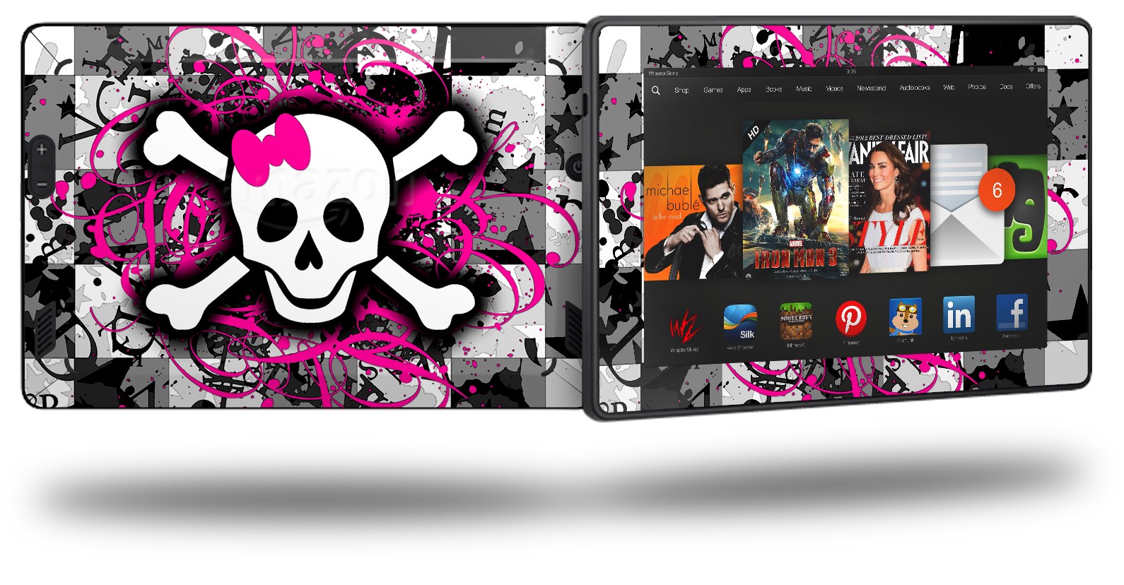 Splatter Girly Skull - Decal Style Skin fits 2013 Amazon Kindle Fire HD 7 inch