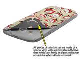 uSkins™ are self adhering vinyl skins that help prevent scratches and look great doing it. Unlike bulky silicon, plastic or metal cases and faceplates, uSkins are designed to be thin and very tough. uSkins are a composite of two layers of commercial grade materials. The bottom layer is a soft, flexible vinyl with a special removable adhesive that is easily positioned, applied without air bubbles, and effortlessly removed without leaving a sticky residue. Next we print the bottom layer with UV protected, fade resistant inks that deliver superb photo quality designs in vibrant colors. Finally we bond a professional grade laminate over the entire skin adding a glossy protective finish.