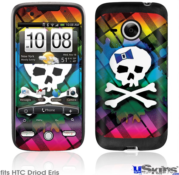 HTC Droid Eris Skin - Rainbow Plaid Skull
