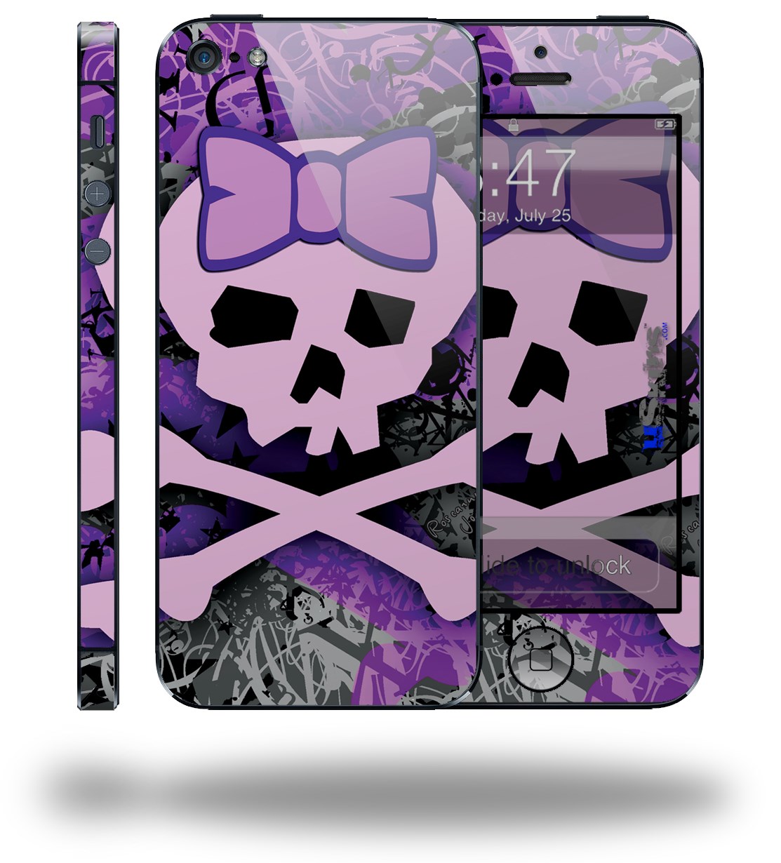 Purple Girly Skull - Decal Style Vinyl Skin (fits Apple Original iPhone 5, NOT the iPhone 5C or 5S)