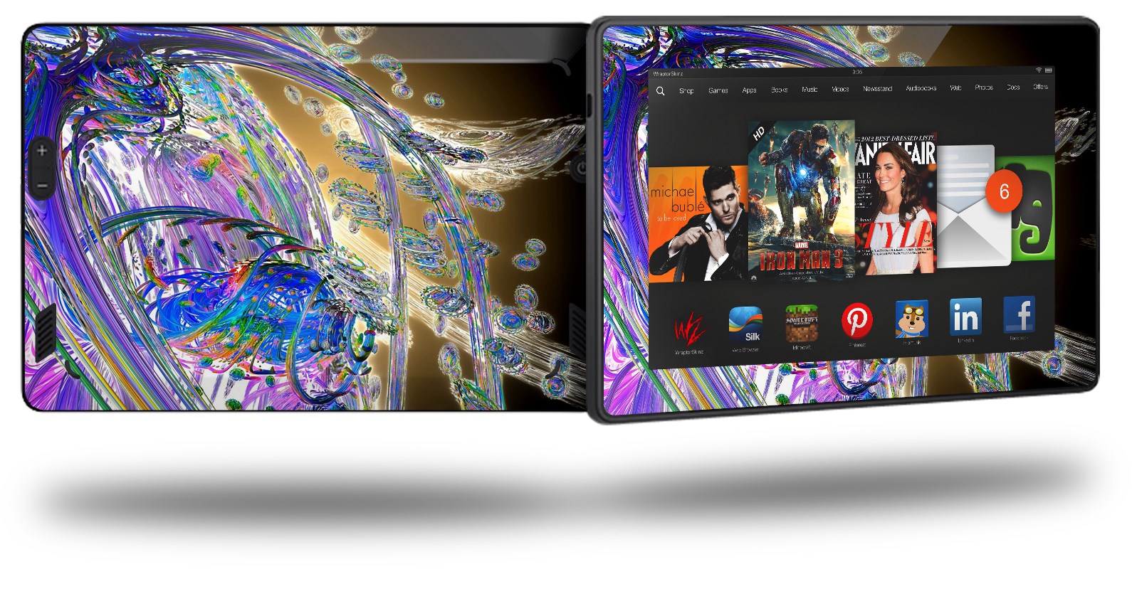 • Skin covers front and back of the Kindle.