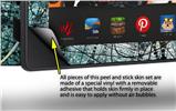 uSkins™ are self adhering vinyl skins that help prevent scratches and look great doing it. Unlike bulky silicon and plastic covers, uSkins are designed to be thin and very tough. uSkins are a composite of two layers of commercial grade materials. The bottom layer is a soft, flexible vinyl with a special removable adhesive that is easily positioned and applied without air bubbles. The bottom layer print with special UV protected, fade resistant inks that deliver superb photo quality designs in vibrant colors. Finally we bond a professional grade laminate over the entire skin adding a glossy protective finish.