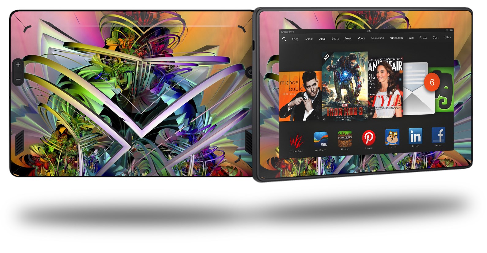 • Skin covers front and back of the Kindle.