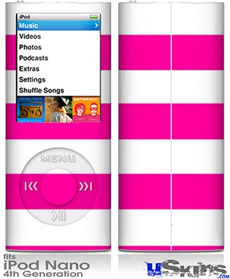 iPod Nano 4G Skin - Psycho Stripes Hot Pink and White