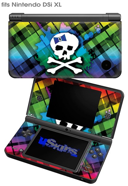 Rainbow Plaid Skull - Decal Style Skin fits Nintendo DSi XL (DSi SOLD SEPARATELY)