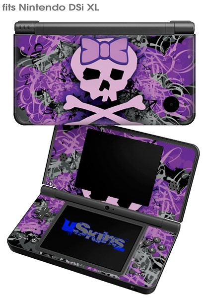Purple Girly Skull - Decal Style Skin fits Nintendo DSi XL (DSi SOLD SEPARATELY)
