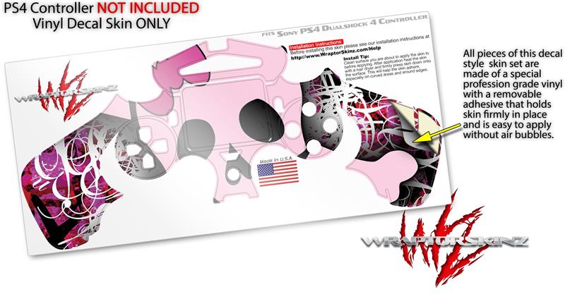 WraptorSkinz Skin compatible with Sony PS4 Dualshock Controller PlayStation 4 Original Slim and Pro Pink Skull (CONTROLLER NOT INCLUDED)