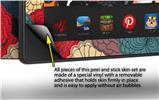uSkins™ are self adhering vinyl skins that help prevent scratches and look great doing it. Unlike bulky silicon and plastic covers, uSkins are designed to be thin and very tough. uSkins are a composite of two layers of commercial grade materials. The bottom layer is a soft, flexible vinyl with a special removable adhesive that is easily positioned and applied without air bubbles. The bottom layer print with special UV protected, fade resistant inks that deliver superb photo quality designs in vibrant colors. Finally we bond a professional grade laminate over the entire skin adding a glossy protective finish.