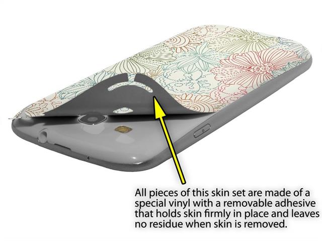 • Decal style vinyl skin covers front and back of Samsung Galaxy S III S3 phone.