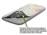 uSkins™ are self adhering vinyl skins that help prevent scratches and look great doing it. Unlike bulky silicon, plastic or metal cases and faceplates, uSkins are designed to be thin and very tough. uSkins are a composite of two layers of commercial grade materials. The bottom layer is a soft, flexible vinyl with a special removable adhesive that is easily positioned, applied without air bubbles, and effortlessly removed without leaving a sticky residue. Next we print the bottom layer with UV protected, fade resistant inks that deliver superb photo quality designs in vibrant colors. Finally we bond a professional grade laminate over the entire skin adding a glossy protective finish.