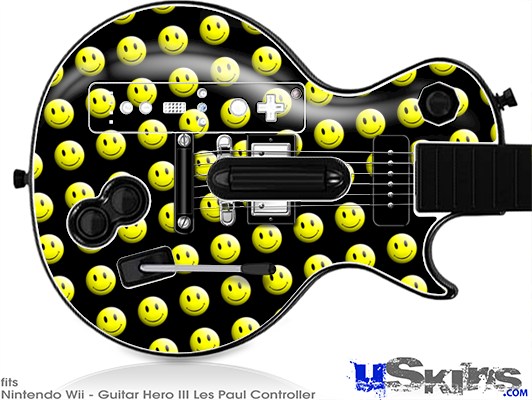 Guitar Hero III Wii Les Paul Skin - Smileys on Black