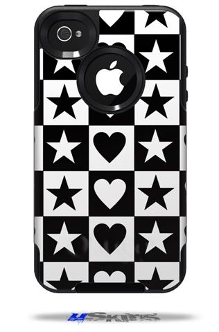 Hearts And Stars Black and White - Decal Style Vinyl Skin fits Otterbox Commuter iPhone4/4s Case (CASE SOLD SEPARATELY)