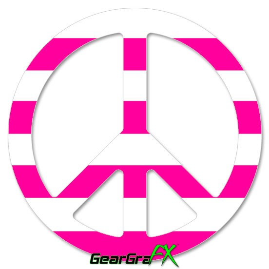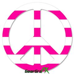 Psycho Stripes Hot Pink and White - Peace Sign Car Window Decal 6 x 6 inches