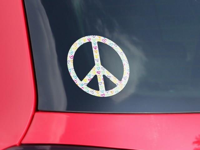 Kearas Hearts White - Peace Sign Car Window Decal 6 x 6 inches