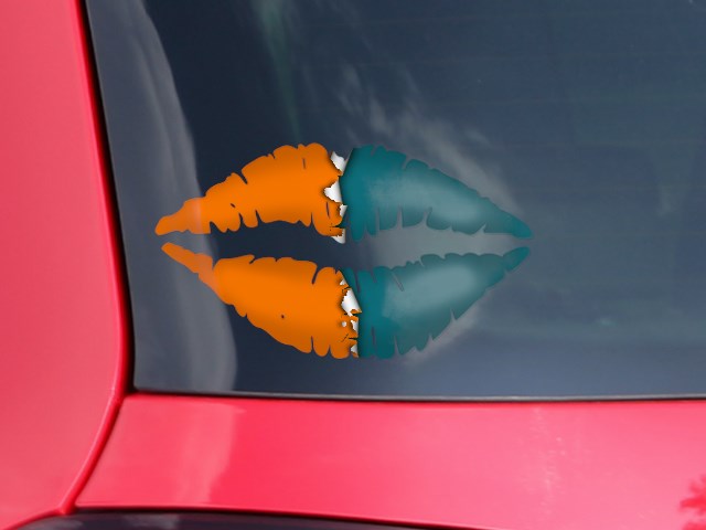 Lips Decal 9x5.5 Ripped Colors Orange Seafoam Green