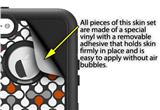 uSkins™ are self adhering vinyl decal style skins and are a great way to add a new look to your existing protective case. uSkins are a composite of two layers of commercial grade materials. The bottom layer is a soft, flexible vinyl with a special removable adhesive that is easily positioned, applied without air bubbles. Next we print the bottom layer with UV protected, fade resistant inks that deliver superb photo quality designs in vibrant colors. Finally we bond a professional grade laminate over the entire skin adding a glossy protective finish.