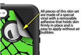 uSkins™ are self adhering vinyl decal style skins and are a great way to add a new look to your existing protective case. uSkins are a composite of two layers of commercial grade materials. The bottom layer is a soft, flexible vinyl with a special removable adhesive that is easily positioned, applied without air bubbles. Next we print the bottom layer with UV protected, fade resistant inks that deliver superb photo quality designs in vibrant colors. Finally we bond a professional grade laminate over the entire skin adding a glossy protective finish.